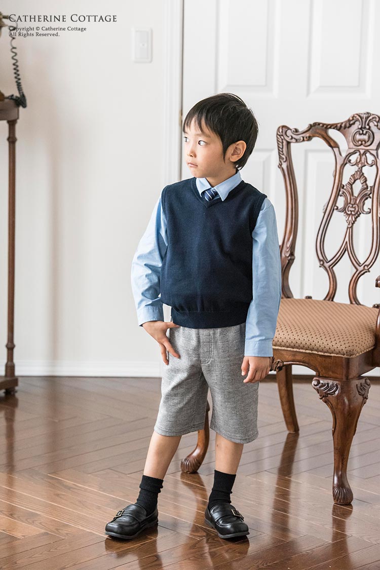 子供服 コットンニットスクールベスト 男の子 女の子 紺 無地 ネイビー Vネック[140 150 160cm]キャサリンコテージ フォーマル キッズ 私立 小学校 中学校 受験 面接 学校訪問 通学 男女兼用 制服 [TS]10 TAK