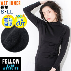 保温インナー レディース ホットラッシュガード FELLOW 蓄熱 保温 速乾 裏起毛 紫外線予防 UPF50+ 長袖タイプ S〜LL 夏のプール体温低下防止 冬 サーフィン セミドライ ウェットスーツ用インナー として 水中や陸上でも